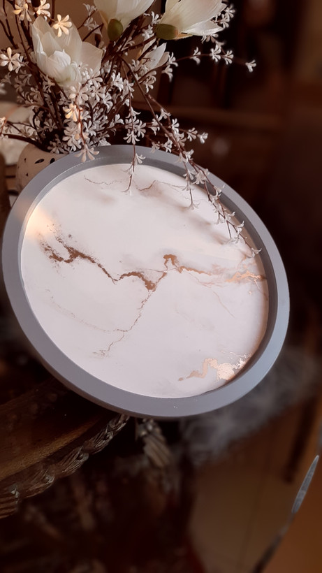 سینی چوبی با طرح سنگ مرمر سفید گزینه جذابی برای میز پذیرایی شما می باشد .